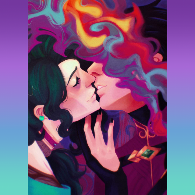 A print of Khada Jhin and Lukai Hwei from League of Legends *almost* kissing.