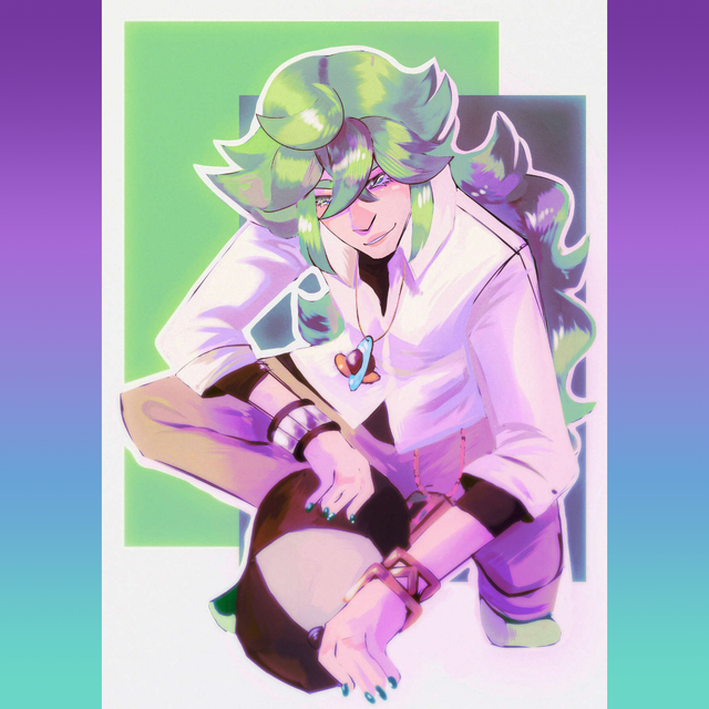 A print of N (Natural Harmonia Gropius) from Pokemon Black/White.