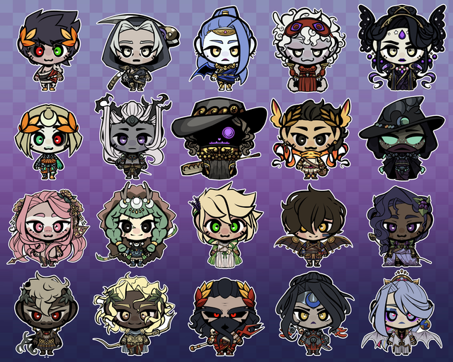 5 cm stickers depicting Supergiant's Hades + Hades II characters. This is UNOFFICIAL merchandise.Features a glossy coating.
