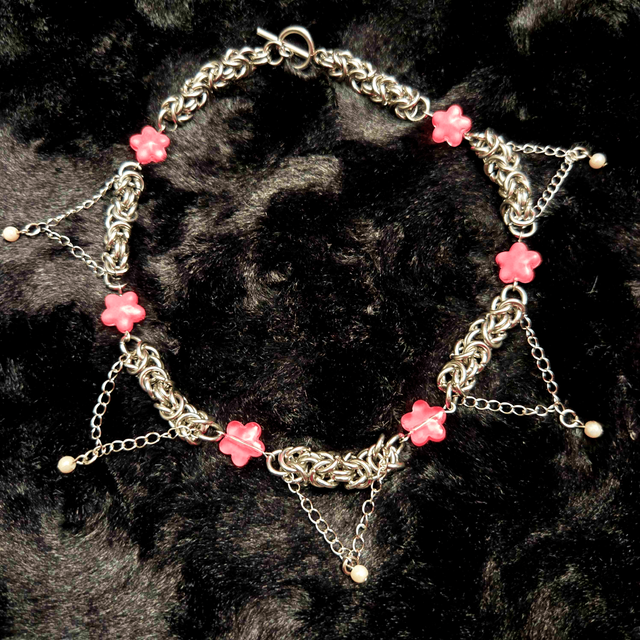 Chainmaille jewelry made of 304 Stainless Steel and Glass Beads.
